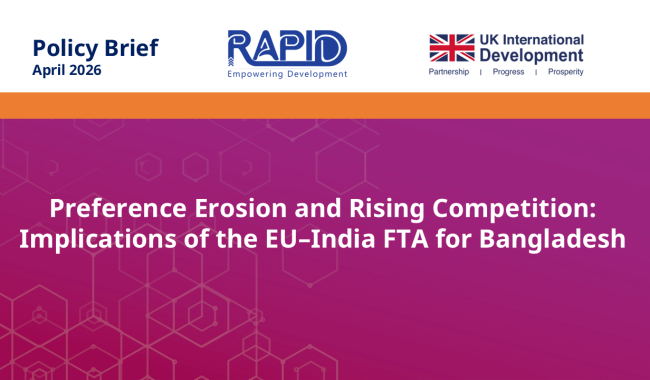 Latest Policy Brief || April 2026 || This policy brief examines how the EU–India Free Trade Agreement, combined with Bangladesh’s graduation from LDC status, could reshape the country’s export prospects in the European Union, its largest export market.