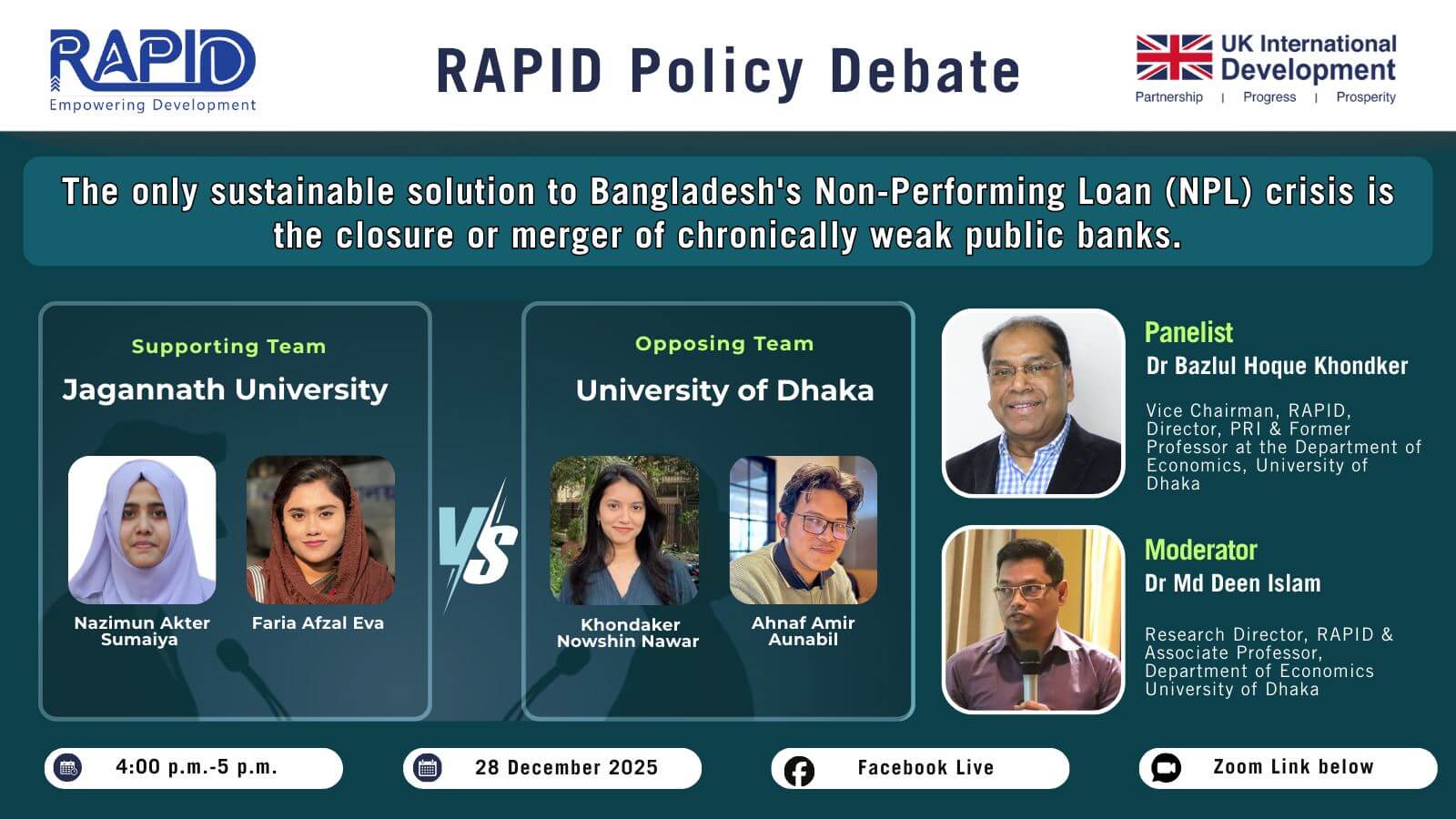 RAPID Policy Debate: The only sustainable solution to Bangladesh's Non-Performing Loan (NPL) crisis is the closure or merger of chronically weak public banks.